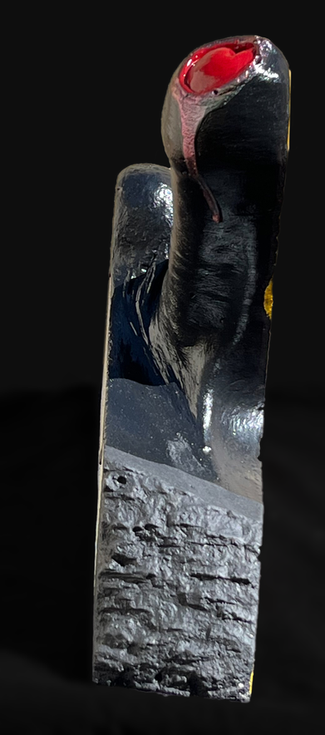 A partir dessas repetições, passo a criar versões. Cada uma carrega pequenas histórias, fragmentos de pensamentos que atravessam minha mente. Não busco uma linearidade; ao contrário, permito que múltiplas narrativas emerjam com liberdade, como se fossem pequenas tatuagens sobre o concreto. Pinto, enfeito, ritualizo. Às vezes, a obra se torna um comentário político; em outras, um relicário de segredos.